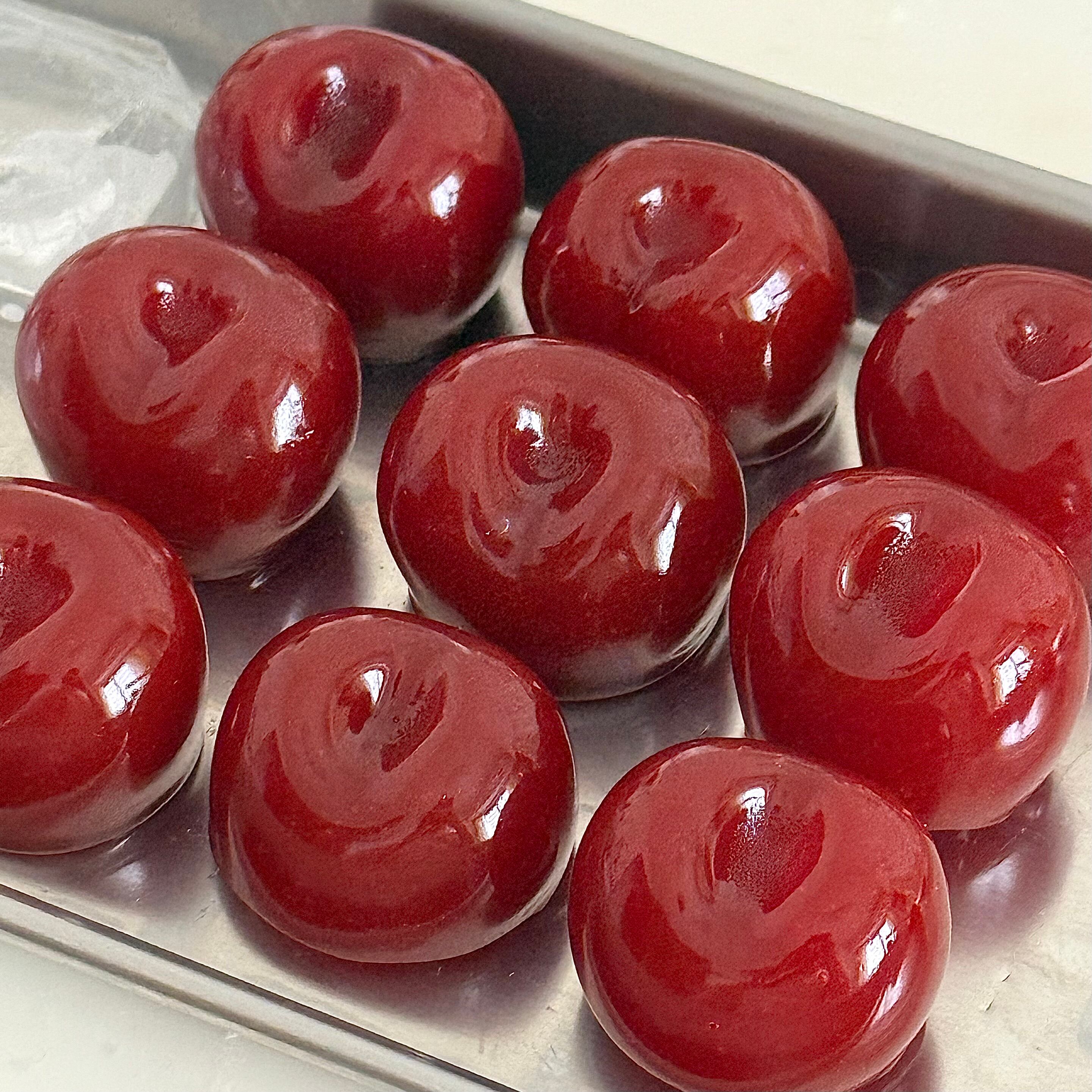 ソーダの中にぷにぷになチェリーを浮かべました。