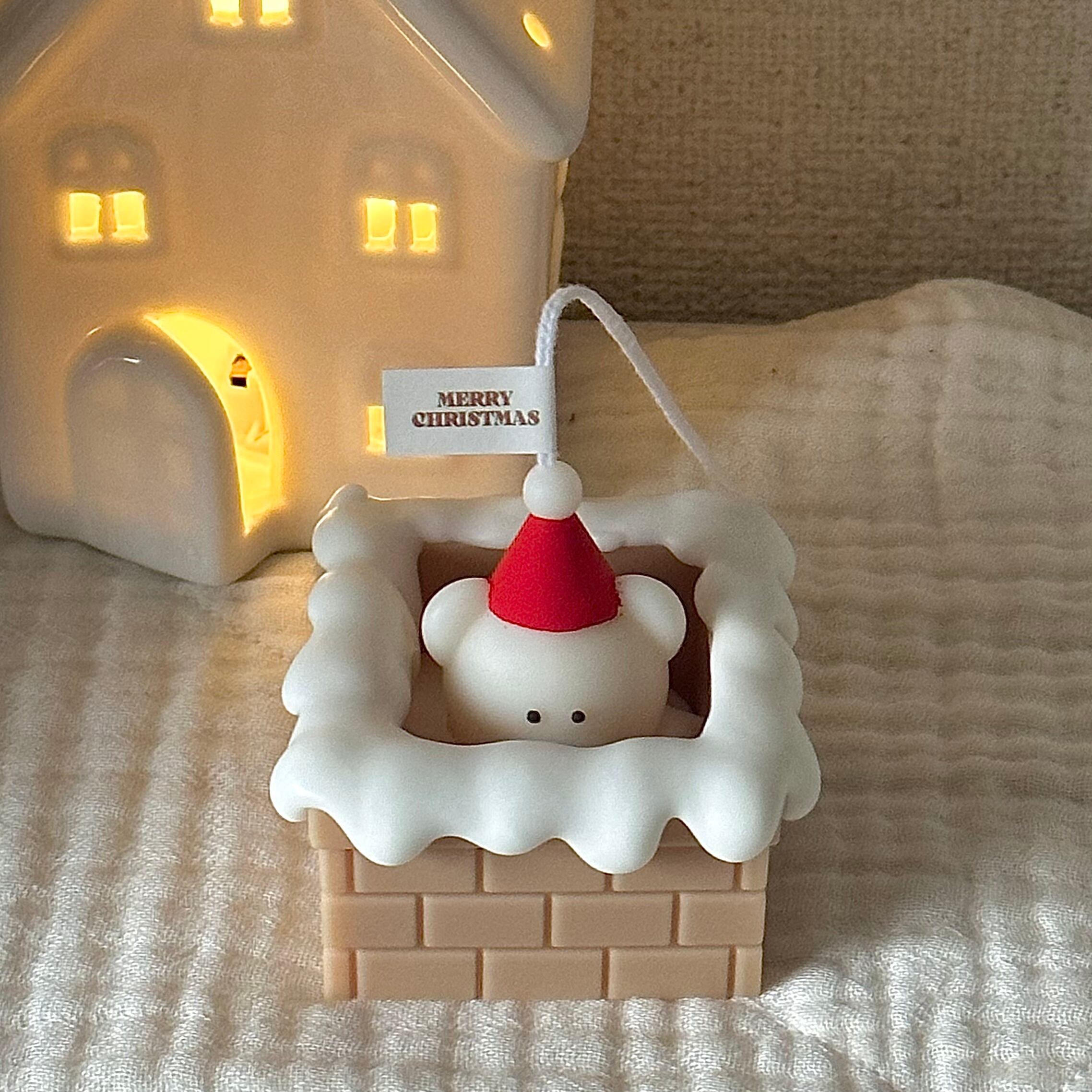 chimney(煙突)からひょっこり顔を出したサンタベアキャンドルです。